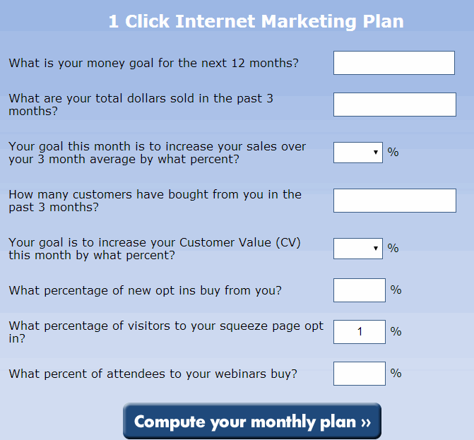 Bonus One: 1 Click Marketing Plan Tool
